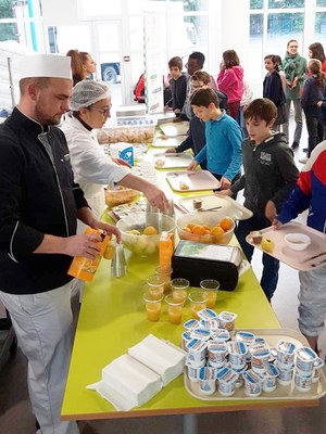 Par conséquent, les élèves de 6ème ont participé, le mercredi 13 novembre 2019 à 8h00 à un petit déjeuner, préparé par notre service de restauration Scolarest, durant lequel une nutritionniste leur a donné les clés d’une alimentation saine et équilibrée.