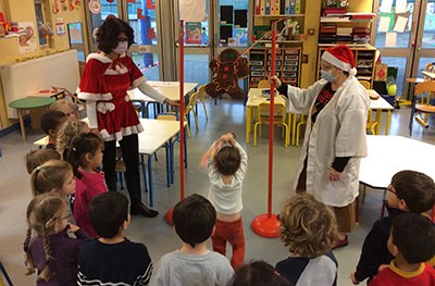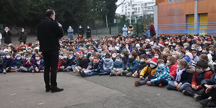La matinée a démarré par une célébration de l’Avent regroupant dans la grande cour les classes élémentaires et celles du collège.